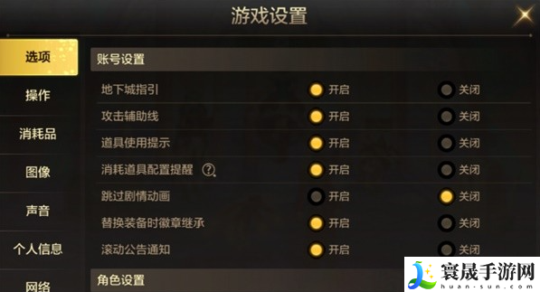 2、在设置【选项】右侧可以看到【攻击辅助线】,点击后面的开启按钮即可。