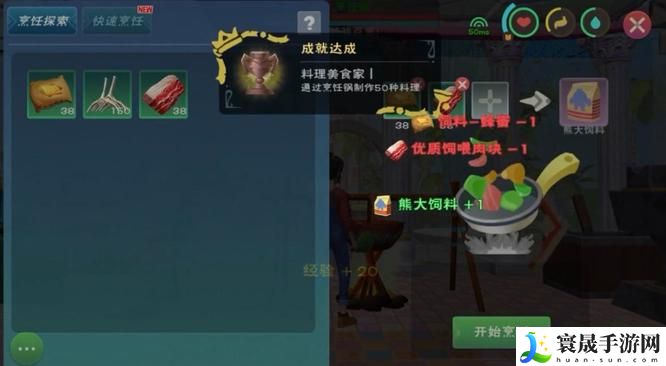 4、将食材全部放入,点击“开始烹饪”,就可以获得一包雪原熊大饲料。