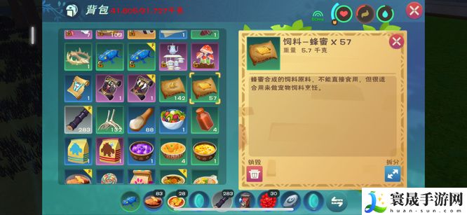 1、想获得蜂蜜饲料包,需要使用五个蜂蜜才能合成一个。