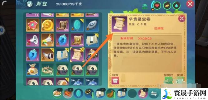 玩家在创造与魔法游戏里面,探索地图的时候,除发现各种道具资源外,还会在一些隐蔽的地方发现隐藏的宝藏。如大家想节省寻找宝藏的时候,可使用华贵藏宝图,根据提示找到宝