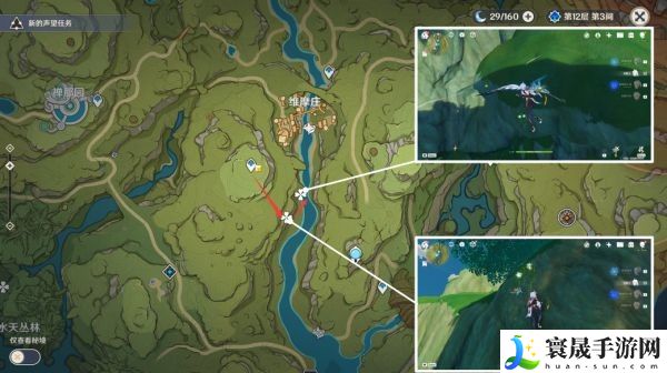 跑图建议:因为劫波莲基本都生长在悬崖上,有温蒂、万叶、钟离的可优先放置在队伍
