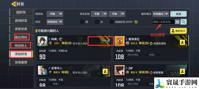 5、如大家已经添加过好友,可在添加页面中,看到好友后面的已申请标识。