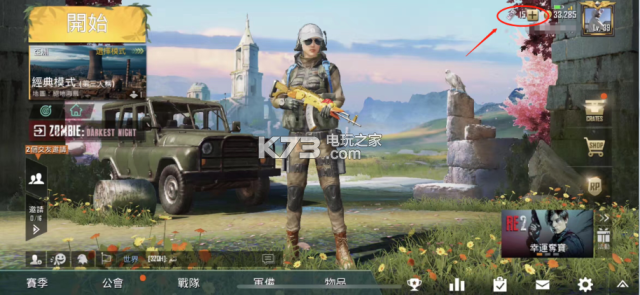 进入游戏的主界面,有一个加号,这里就是游戏的充值系统了,也就是游戏的充值的入口,游戏里面的皮肤和服装以及武器都是在这里进行购买和获得的。