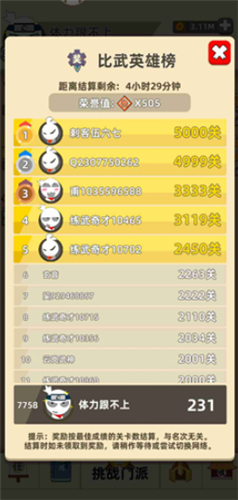 2、玩家可根据比武大会关卡进度,结算后可获得一定数量的金钥匙奖励,最多可获得五根金钥匙。
