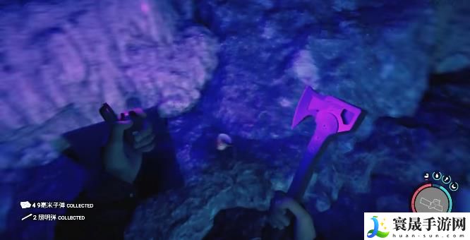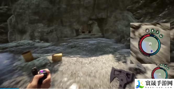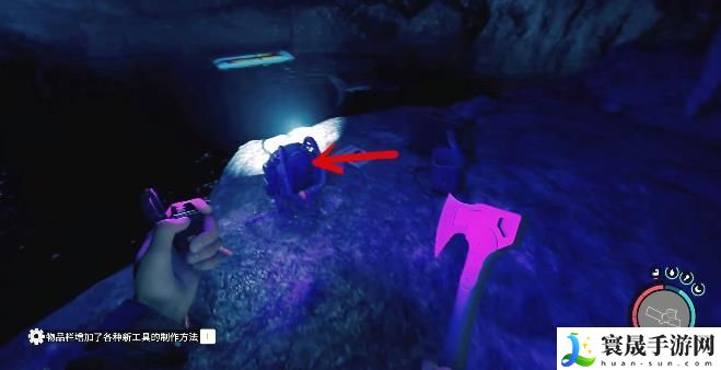 5、向里探索,在深处会有水潭,岸边有很多东西,潜水服就在箭头所指位置。