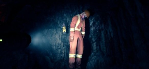与呼吸器在同一个洞穴里,沿着洞穴的右侧走到尽头,在吊起的一具尸体上可以拾取到电击枪。