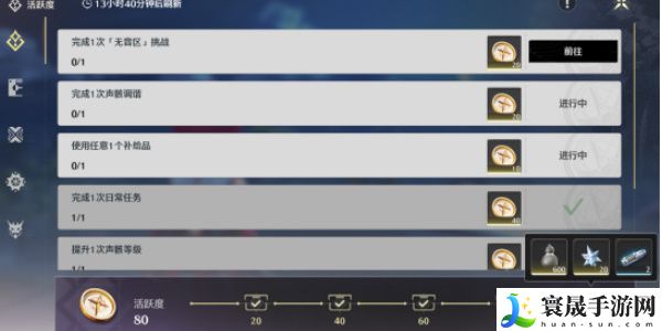 完成每日活跃度任务,达到一定活跃度可以获得60星声。