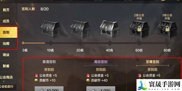 公会成员累计签到足够人数,可以而金币、复活币等材料