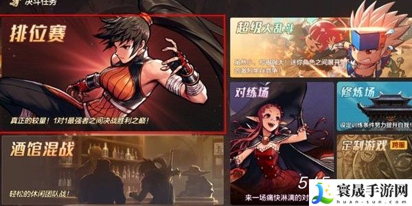2、进入后就能看到六大玩法模块,其中排位赛就是最1v1对战模式。