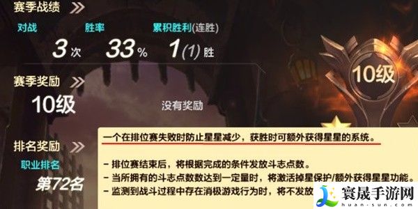 3、安全模式:就是“信用分”制度,通过累计斗志点数来获得掉星保护机会。
