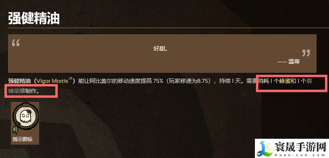 6、强健金油:1个蜂刺和3个哀悼荣耀制作而成。