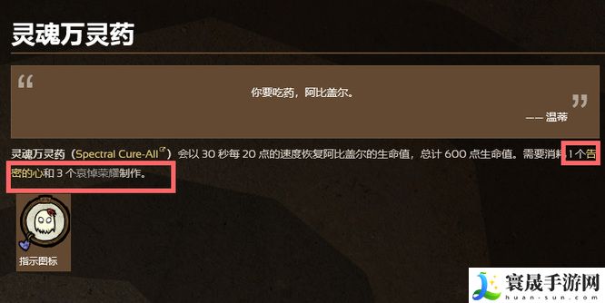2、灵魂万能药:1个告密的心和3个哀悼荣耀制作而成。