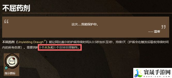 3、不屈药剂:1个木头和1个哀悼荣耀制作而成。