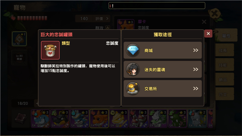 7、当宠物忠诚度达到90级后,想突破100就需要使用巨大罐头。