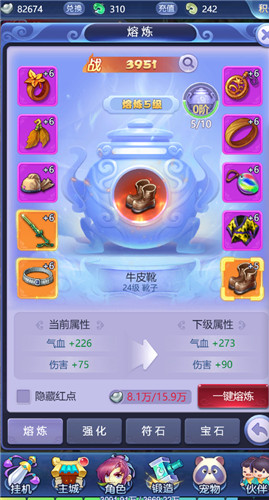 1、对装备进行强化、锻造等,可大幅度提升战力。