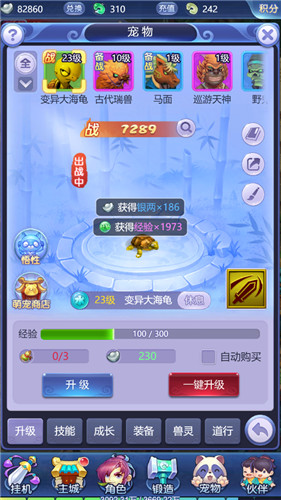 1、可通过宠物升级、技能强化等方法,提升角色战力。