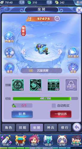 1、玩家可使用续灵草提升坐骑等级,坐骑等级越高可提升角色战力也就越多。