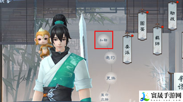 2、进入侠客页面后,点击左边的侠客,在弹出的页面选择私聊,等几分钟不理你,就可以触发该奇遇。