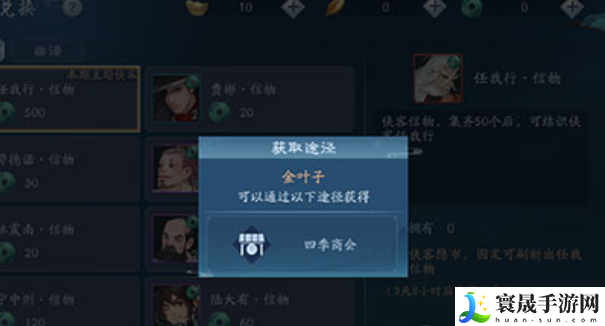 2、点击游侠,选择隐世后,点击右下角刷新,刷三四次金叶子就可以了。