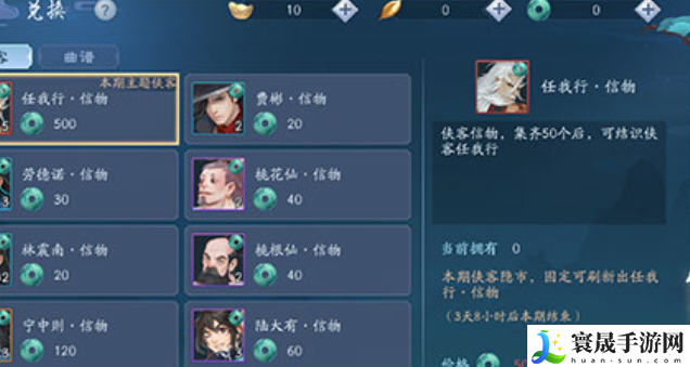 2、在隐市页面,使用500个同心佩兑换侠客信物,就可以完成小奇遇。
