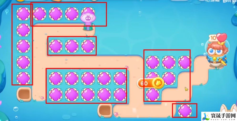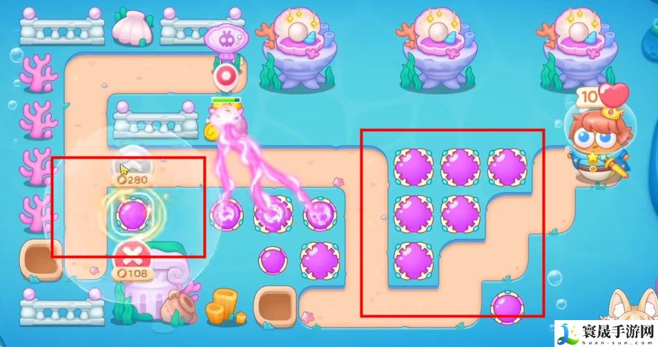 4、具体炮塔如下图所示,这一关主要使用魔法球炮塔。