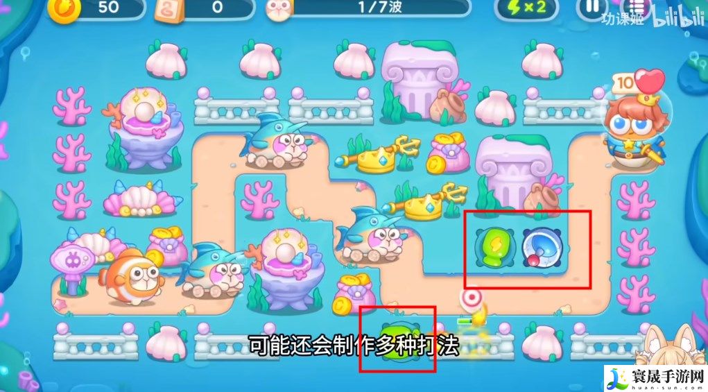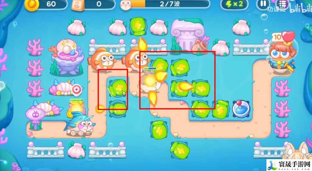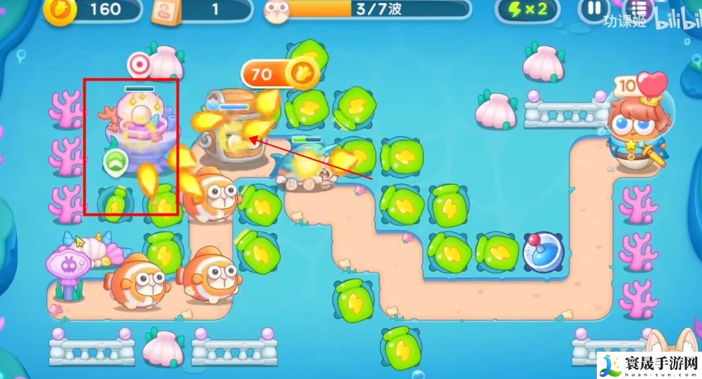 3、多建立瓶子炮塔,一边用来攻击boss,一边攻击珊瑚珍珠道具。