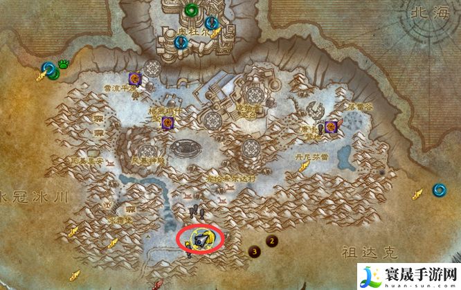 1、玩家先来到风暴峭壁K3营地位置,在这里领取任务。