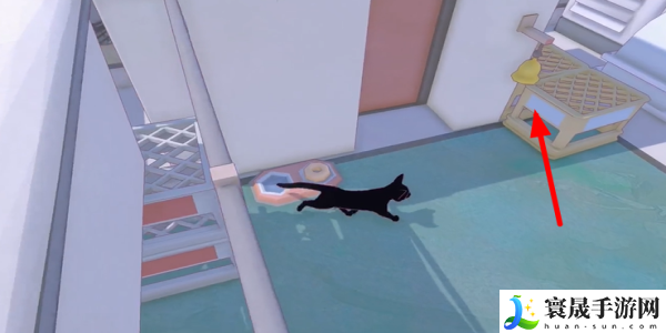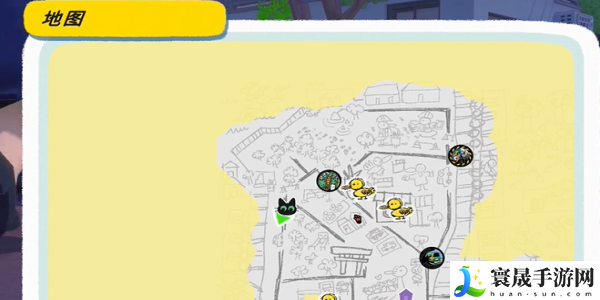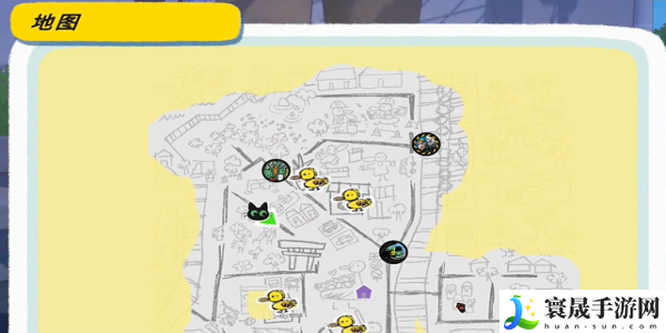 1、打开游戏地图,前往绿色箭头标记的位置,具体位置如图所示,在此和白猫进行对话。