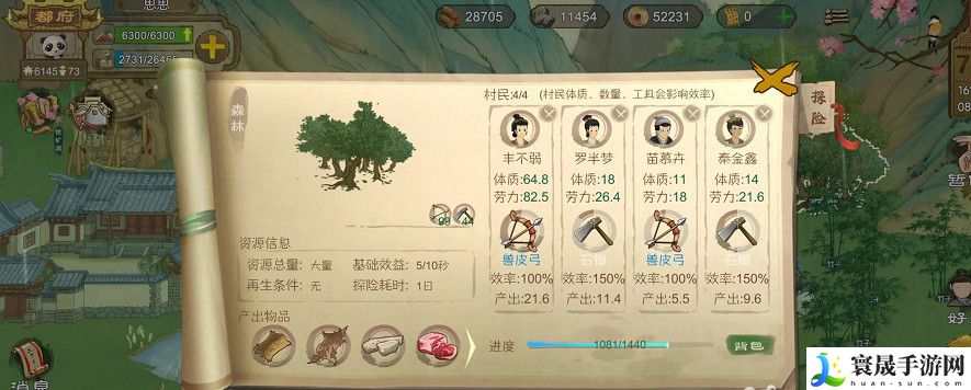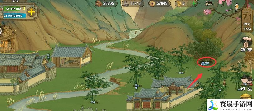 1、进入桃源记游戏里,子啊主页面能看到很多区域,点击右上角森林,就可以进入里面探险。