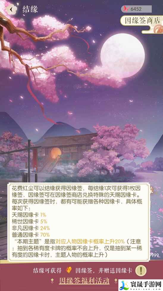 4、如大家红尘数量比较多的话,也可以直接消耗9000点红尘结缘抽卡10次,10次必得一张稀有因缘卡。