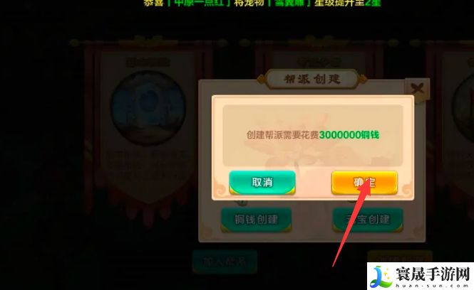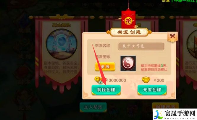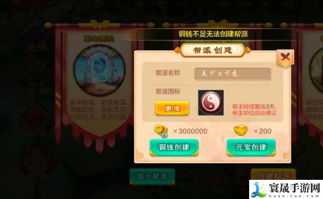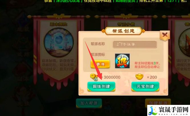 6、消耗对应铜钱数量,就可以创建属于自己的帮派了。