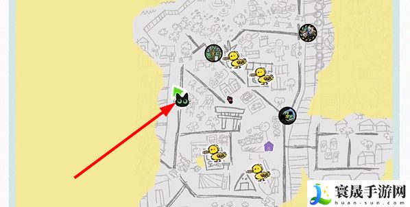1、打开游戏地图,前往绿色箭头标记的位置,具体位置如图所示。
