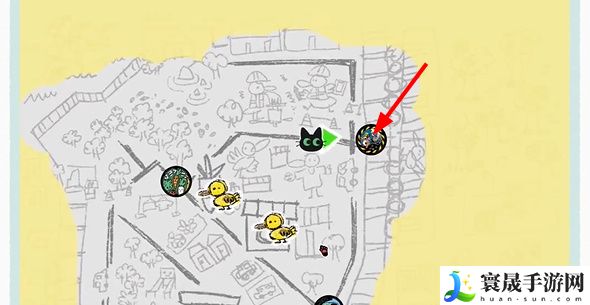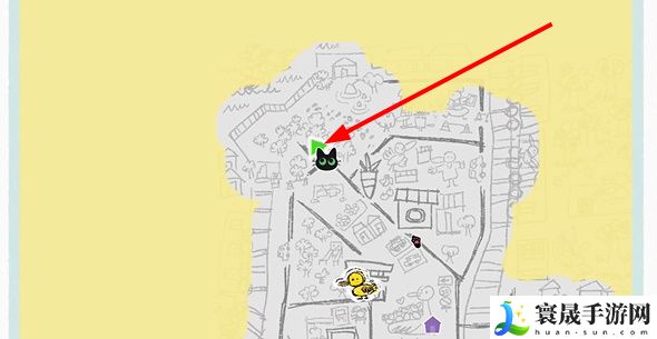 1、打开游戏地图,前往绿色箭头标记的位置,具体位置如图所示。