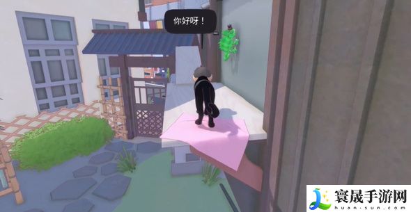 4、就可以在二层外面的墙壁上,看到绿色的变色龙和其进行对话即可。(对话完就会消失)