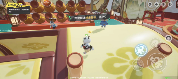 4、建议各位小伙伴在绣球滚滚中尽量保持面向炮筒,这样能够第一时间知悉绣球的发射方向,避开绣球击落点位置。