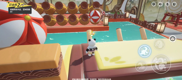 6、值得一提的是,平衡木会突出一些木桩障碍物。小伙伴如果能够在站立时呆在木桩身后,很大概率能躲避掉轰击而来的绣球。