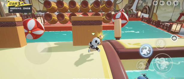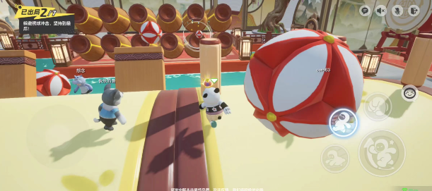 在绣球滚滚关卡中,玩家需要存活在滚动的平衡木上,确保不被滚动的平衡木带动掉入水中。此外,也需要时刻警惕炮轰而来的绣球,避免因绣球砸中而掉落水中。