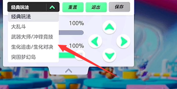 3、将经典玩法模式调成武器大师或冲锋竞技等等枪战模式,设置成默认模式。