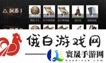 1、洞悉I:利齿子儿18000、岩中典残篇3、星升典残篇3、清扫咒6、粗糙银锭5