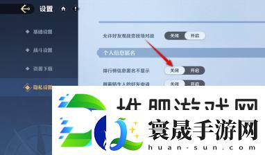 3、在隐私设置界面,银域会显示有关排行榜信息的匿名选项,将滑动按钮调至关闭状态,即可实现不显示功能。