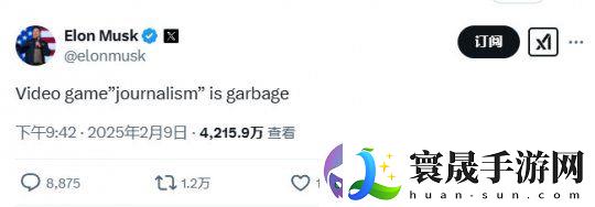 一向反对游戏woke、DEI化的马斯克近日发推,这次将矛头对准了国外的游戏媒体行业。他在X上痛斥了国外的游戏媒体行业,说:“电子游戏媒体就是*(Video game”journalism” is garbage)。”