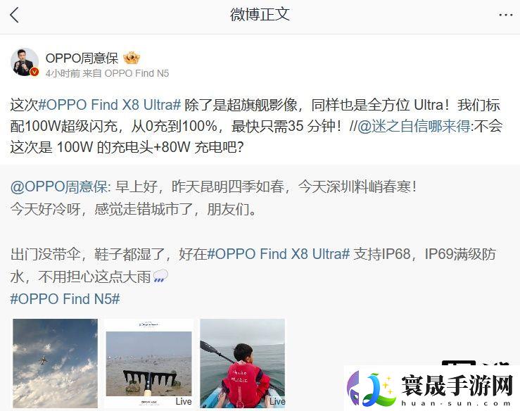 更多- OPPO 周意保透露 Find X8 Ultra 手机电池大于 5910mAh