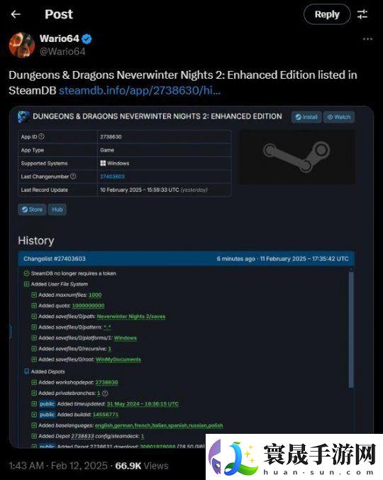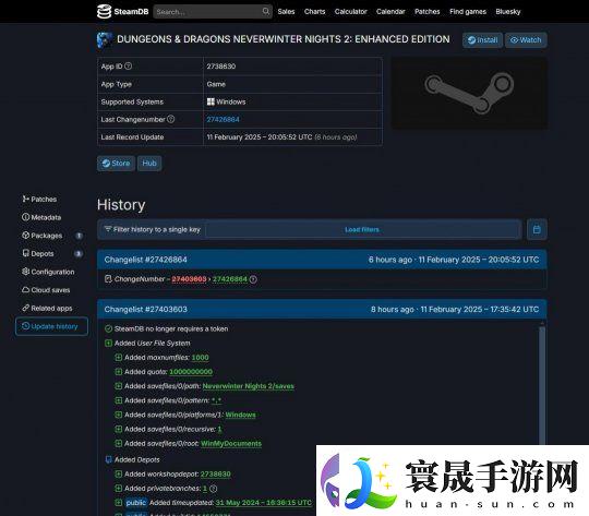 SteamDB数据显示 《D&D:无冬之夜2 增强版》后台列表更新