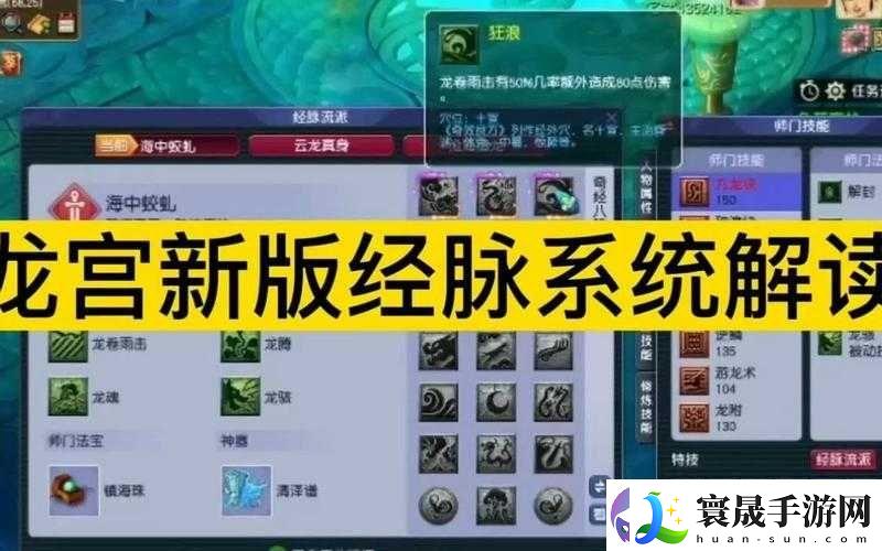 龙宫的经脉方向也是玩家需要考虑的重要因素,海中蛟虬和云龙真身是龙宫的两种经脉方向,分别侧重群体输出和单体输出,玩家可以根据自己的喜好和战斗需求,选择合适的经脉方向进行修炼。