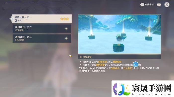原神通路计划第一天我们需要将自己传送到须弥城然后就可以参加盛典与慧业的活动了,去和达雅对话开始今天的活动,想要通过这一关的挑战我们可以选择最省钱的办法,使用三块木板来完成搭桥来到目标地!原神通路计划第一天攻略传送到须弥城,和[达雅]对话进入