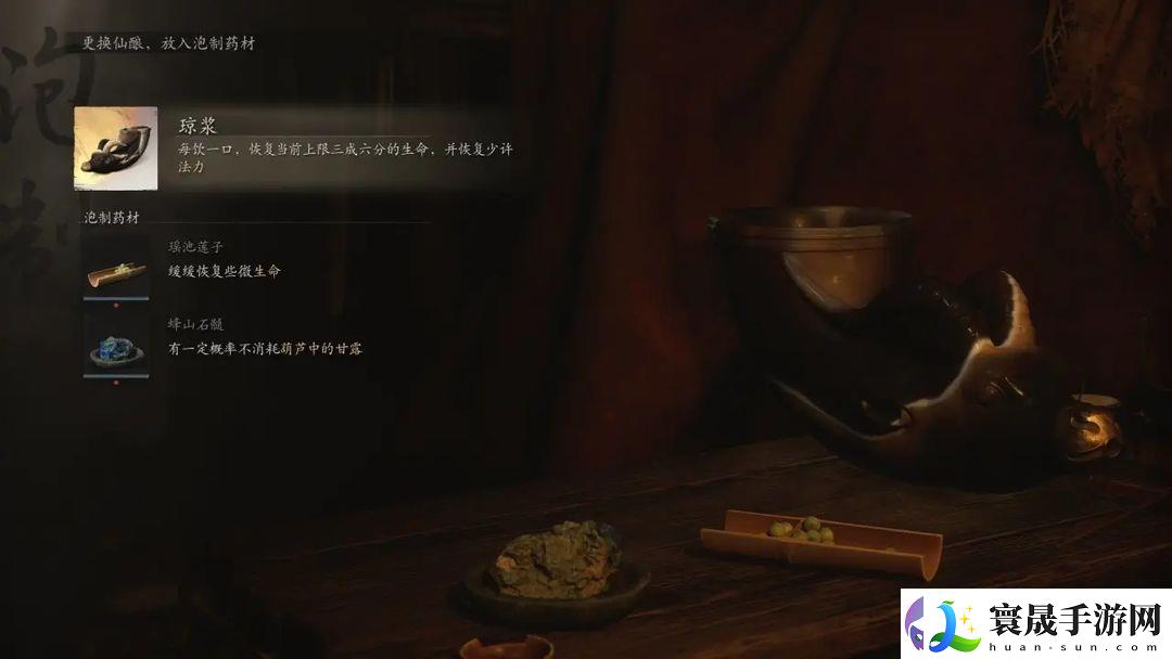 选择琼浆效果:恢复生命的同时,恢复少许可法力!法力的续航是很重要的,至于为什么boss不选择这个,是因为到了后面法力是足够打完一场boss战的,而且后面还能炼丹。