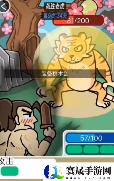 抖个腿子武松打虎这一关已经解锁,玩家需要使用指定道具击败老虎,由于部分小伙伴对具体操作还不太了解,接下来就和小编一起来看看吧。【攻略大全】抖个腿子武松打虎怎么过1、先点击地上的桃木剑,装备桃木剑。2、然后点击武松下方的攻击键,向老虎投掷桃木
