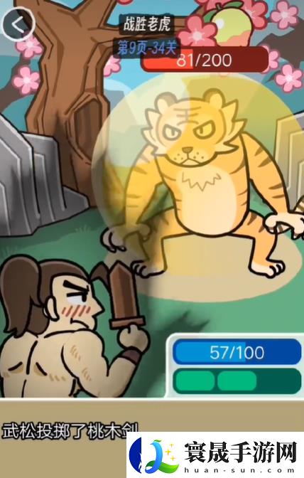 2、然后点击武松下方的攻击键,向老虎投掷桃木剑。
